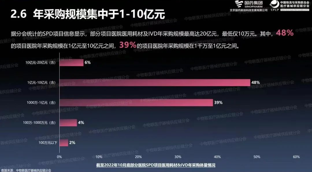 《2022中国公立医院医疗器械SPD市场分析报告》也预测,未来超87%的SPD项目将直接从千万起步,近48%的项目规模在1-10亿元之间。