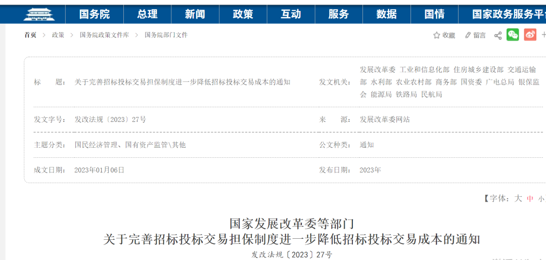 近日,国家发展改革委、住建部等13部门正式下发文件关于完善招标投标交易担保制度进一步降低招标投标交易成本的通知》,明确不得强制要求投标人、中标人缴纳现金保证金、清理各类历史沉淀保证金......