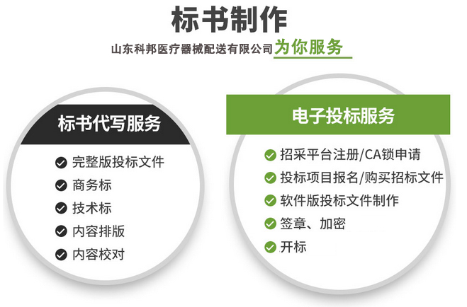 山东科邦医疗器械配送有限公司有着丰富的招投标成功经验积累了大量资源,业务覆盖,标书制作、电子标类标书全程制作加密上传,为各大企业解决“如何做标书”、“标书怎么做能中标”、“哪能做加急标书”、“做标书都需要准备什么”等等一系列疑问,标书制作一站式服务,原创精品标书,杜绝标书雷同,标书无竞争力等现象。专业标书制作团队,24小时标书加急制作服务,标书制作标书打印胶装一站式服务。成为您身的标书专家,随时解答您的一切疑问。“分享成功经验、共筑资源平台、助力企业竞标成功”是我们不变的理念,“想您所想,解您所忧,供您所需”是我们不断的追求。为客户提供专业、高效、高品质的服务是我们的宗旨。选择山东科邦医疗器械配送有限公司,体验轻松竞标,实现资源共享。