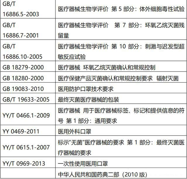 医用口罩产品应根据自身特点适用以下标准,但不限于引用以下标准: