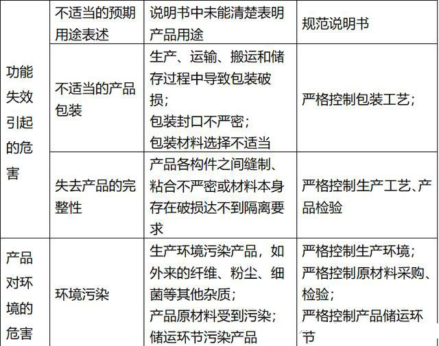 企业在进行风险分析时,至少应考虑表2中的主要危害,企业还应根据自身产品特点确定其他危害。针对产品的各项风险,企业应采取应对措施,确保风险降到可接受的程度。